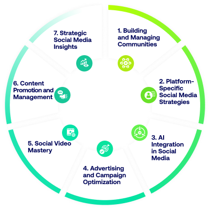 ↗Building and Managing Communities ↗Promoting Content on Platforms↗AI to Enhance Social Media Campaigns↗AI for Content Creation, and Strategy Optimization ↗Managing Instagram, WhatsApp, and Facebook Accounts↗LinkedIn Advertising and Social Selling↗Campaign Optimization for X and Pinterest↗AI for Social Video Analytics↗Creating and Managing YouTube and TikTok Channels↗Social Video Content Creation and Analytics↗Ethical Use of AI